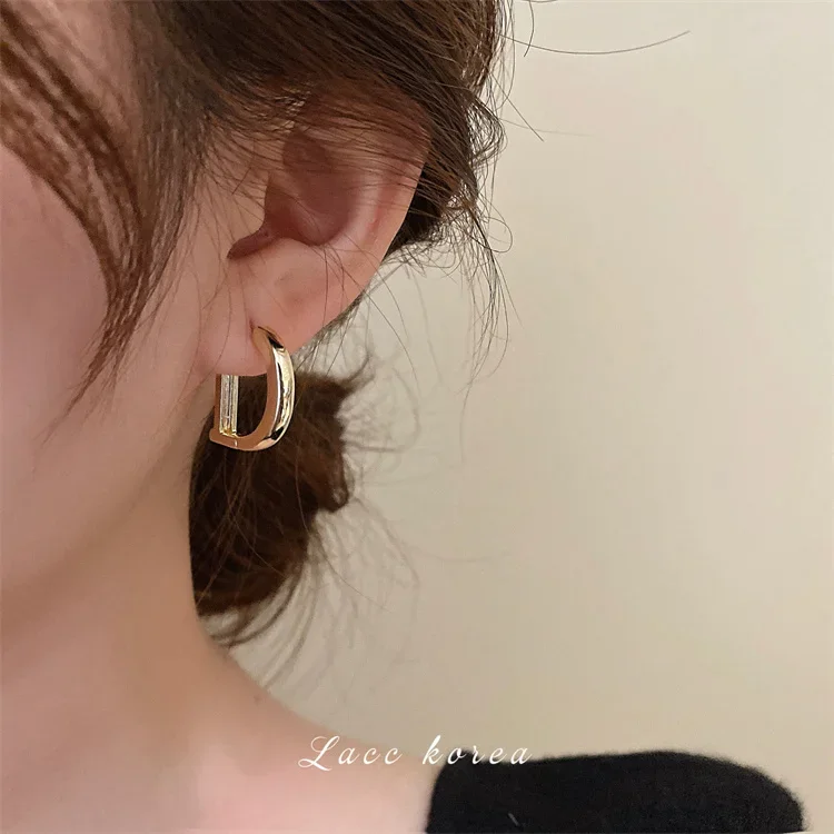 أقراط مجوهرات عصرية كورية جديدة مطلية بالذهب عيار 14 قيراط على شكل حرف D قبل بعد إكسسوارات نسائية يومية متعددة الاستخدامات أنيقة