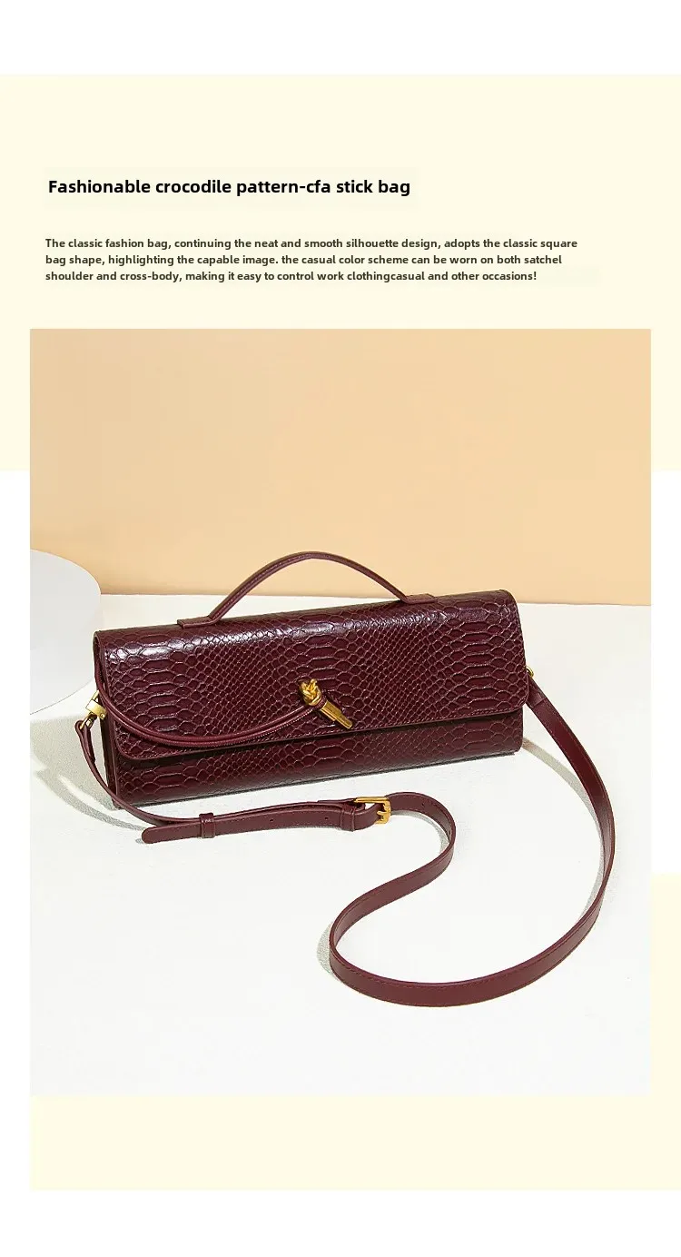 • Fashionable Design : Featuring a crocodile-pattern and cross-style design, this baguette bag adds a vintage touch to any outfit, making it a stylish accessory.