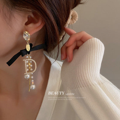 رسالة قلادة إسقاط أقراط للنساء ، طويل الحرير القوس ، كريستال الشرابة الأذن ترصيع ، مجوهرات مقلدة ، فرنسا اللؤلؤ ، العلامة التجارية الفاخرة ، بوتيك