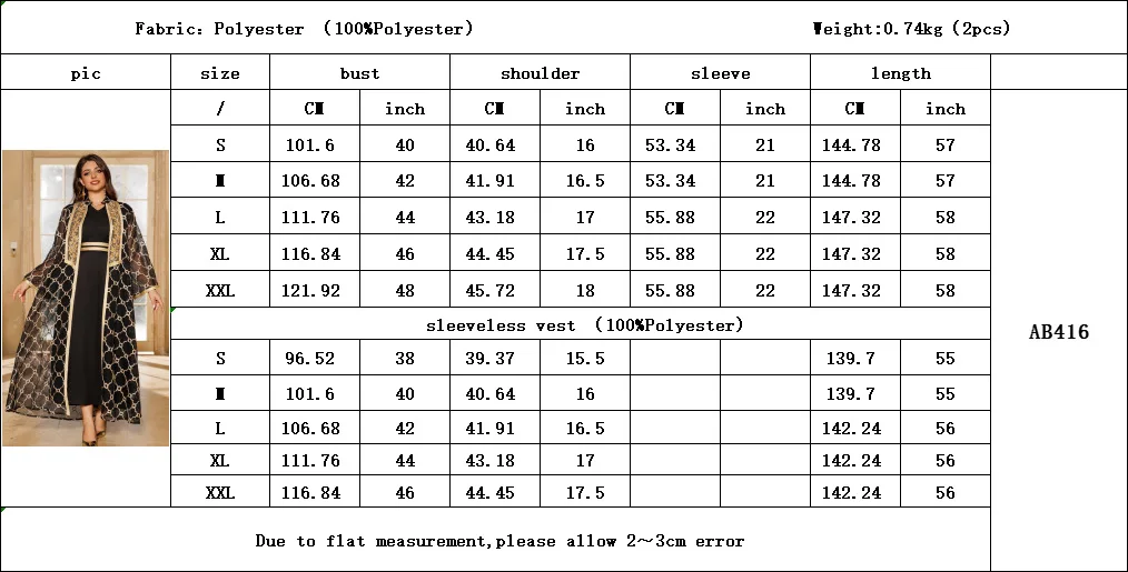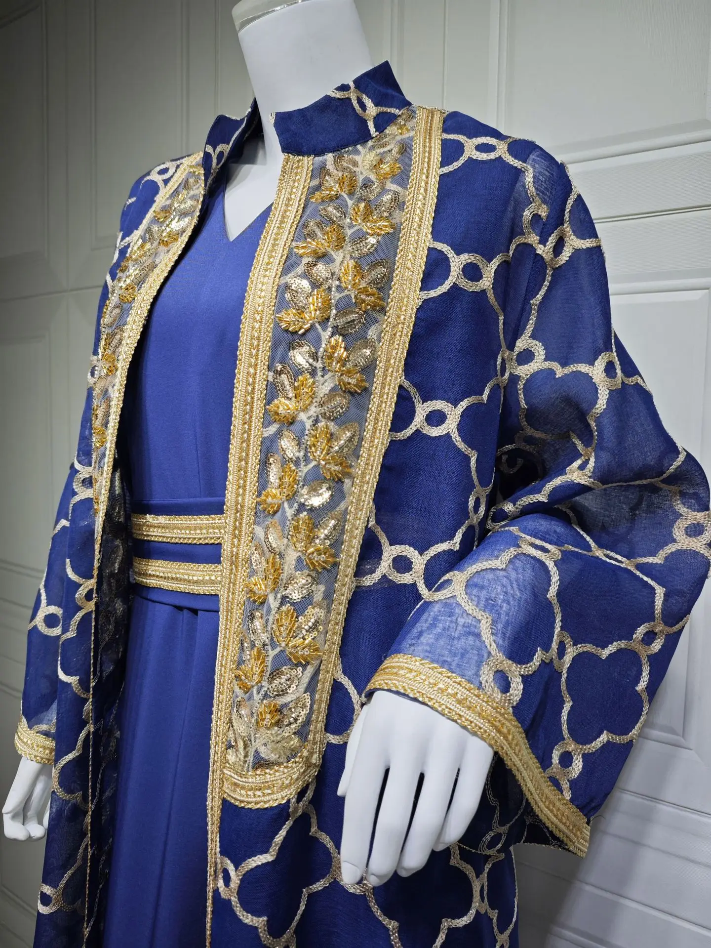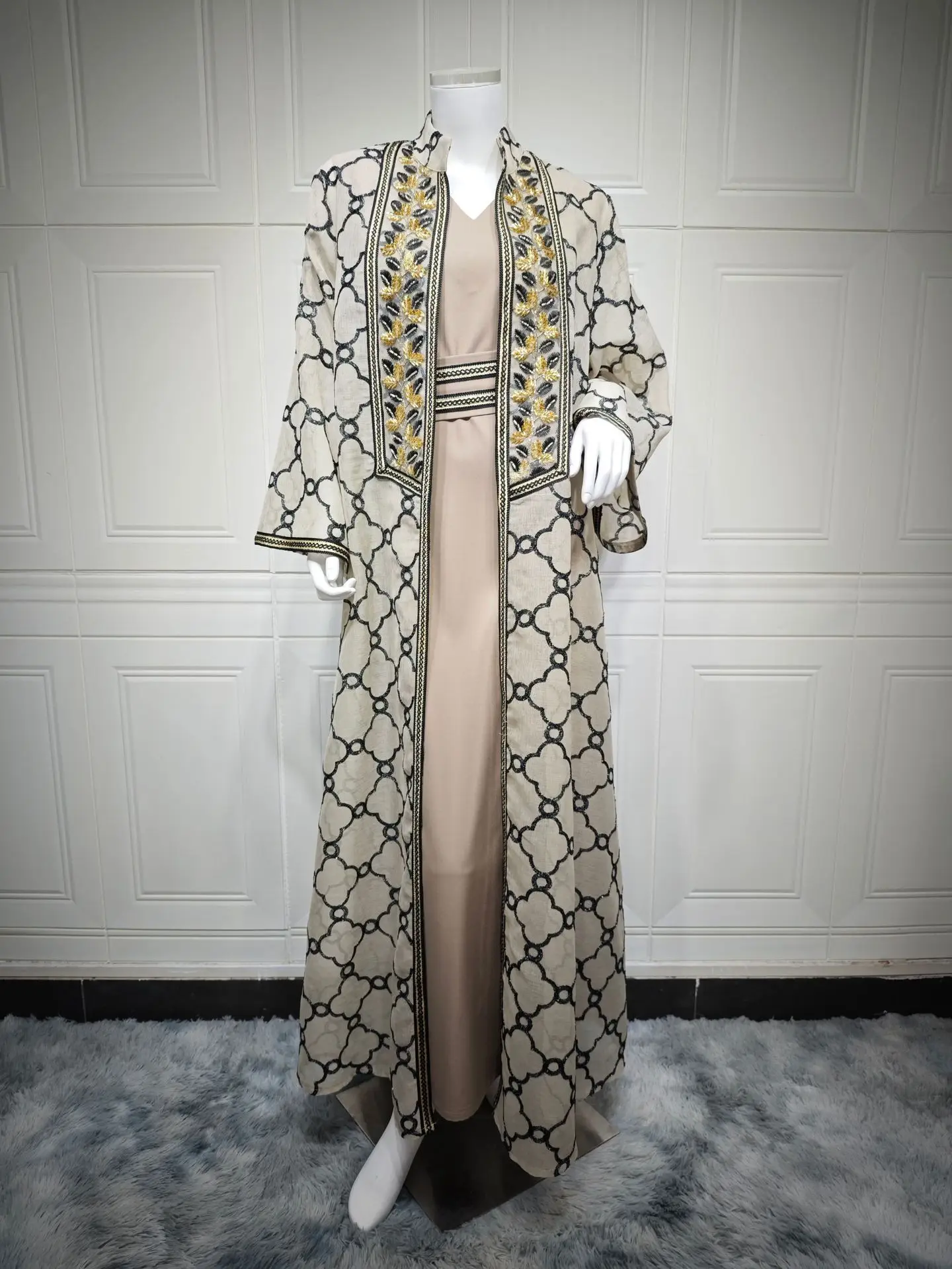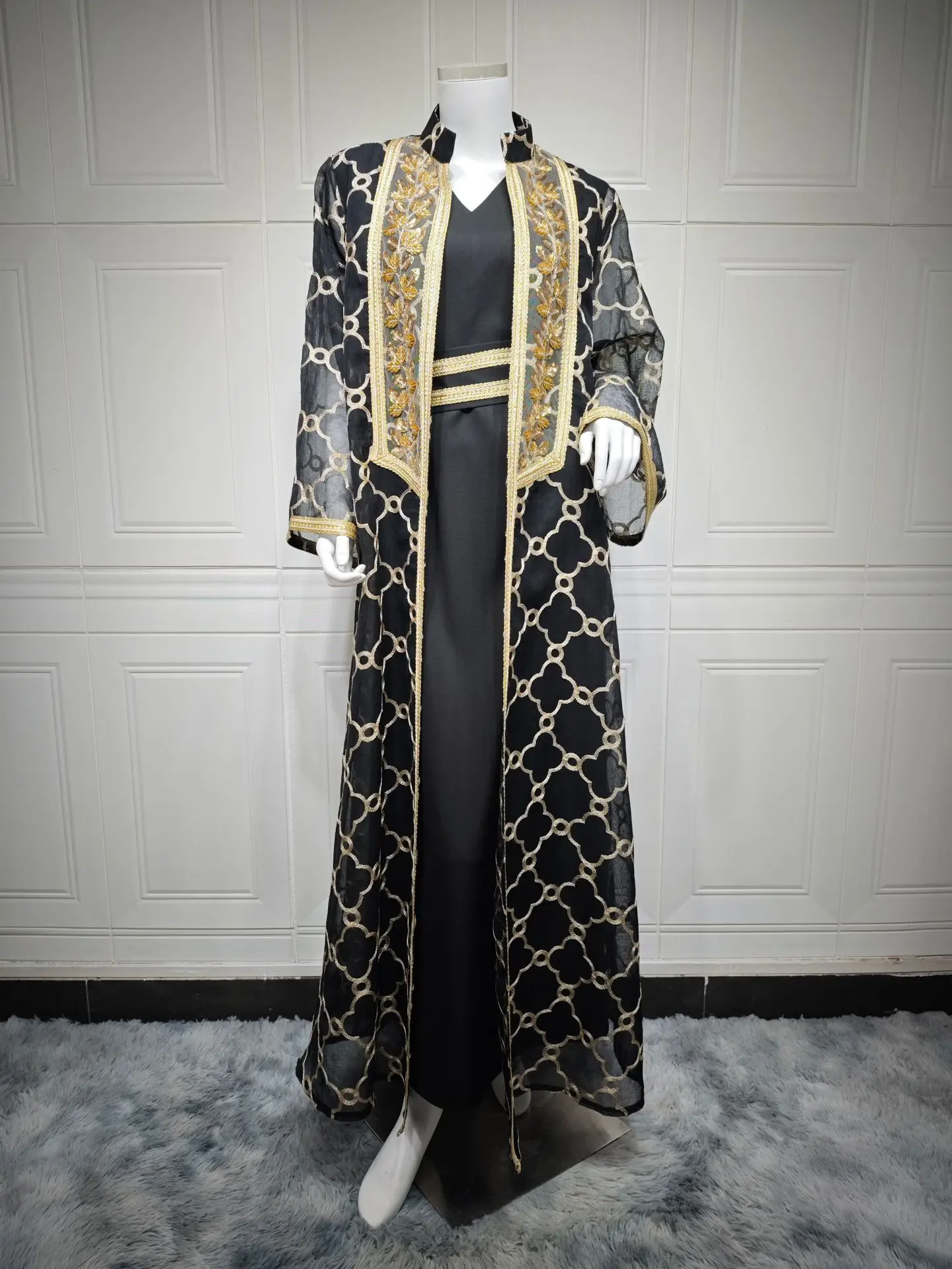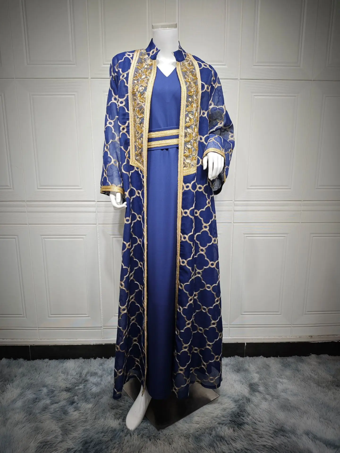 AB416 عيد عباية فستان مجموعة 2 قطعة للنساء مسلم التطريز سترة طويلة رداء رمضان المغرب دبي عبايات قفطان فيستيدوسرقم الموديل:ابي 416