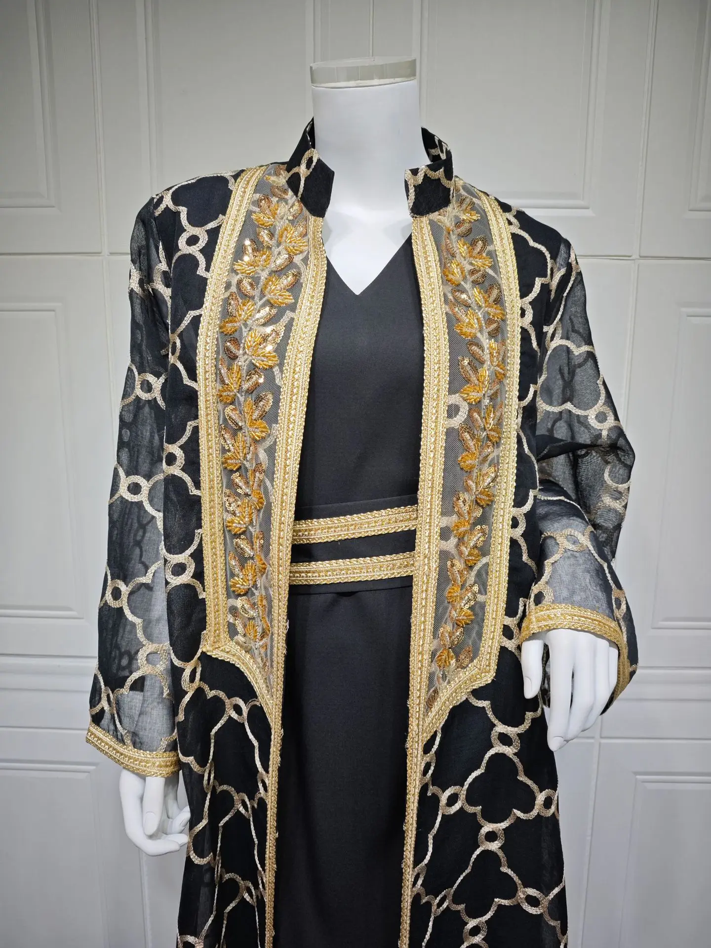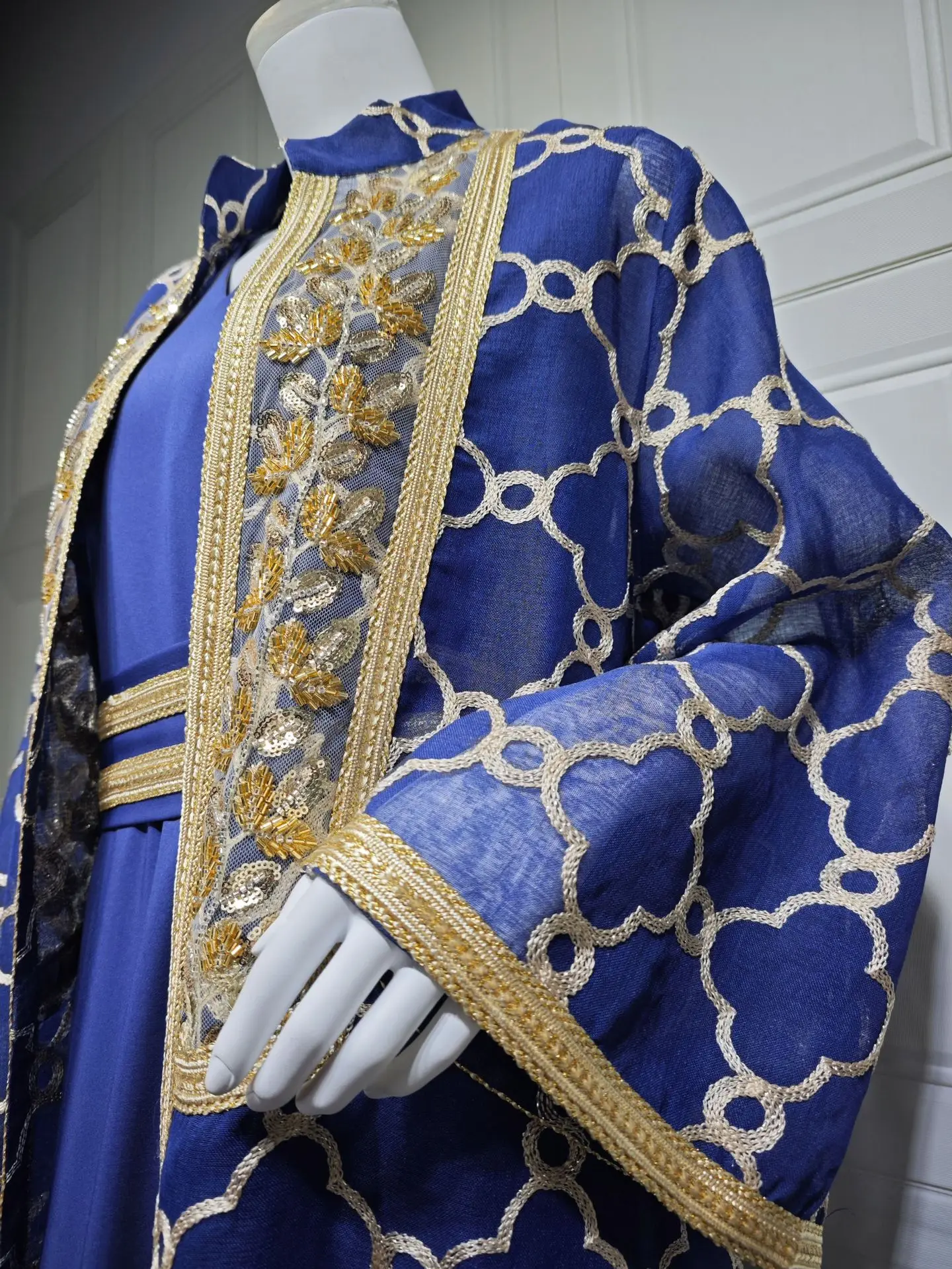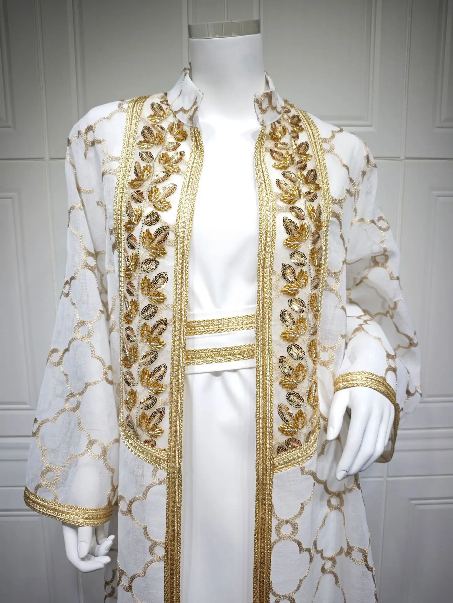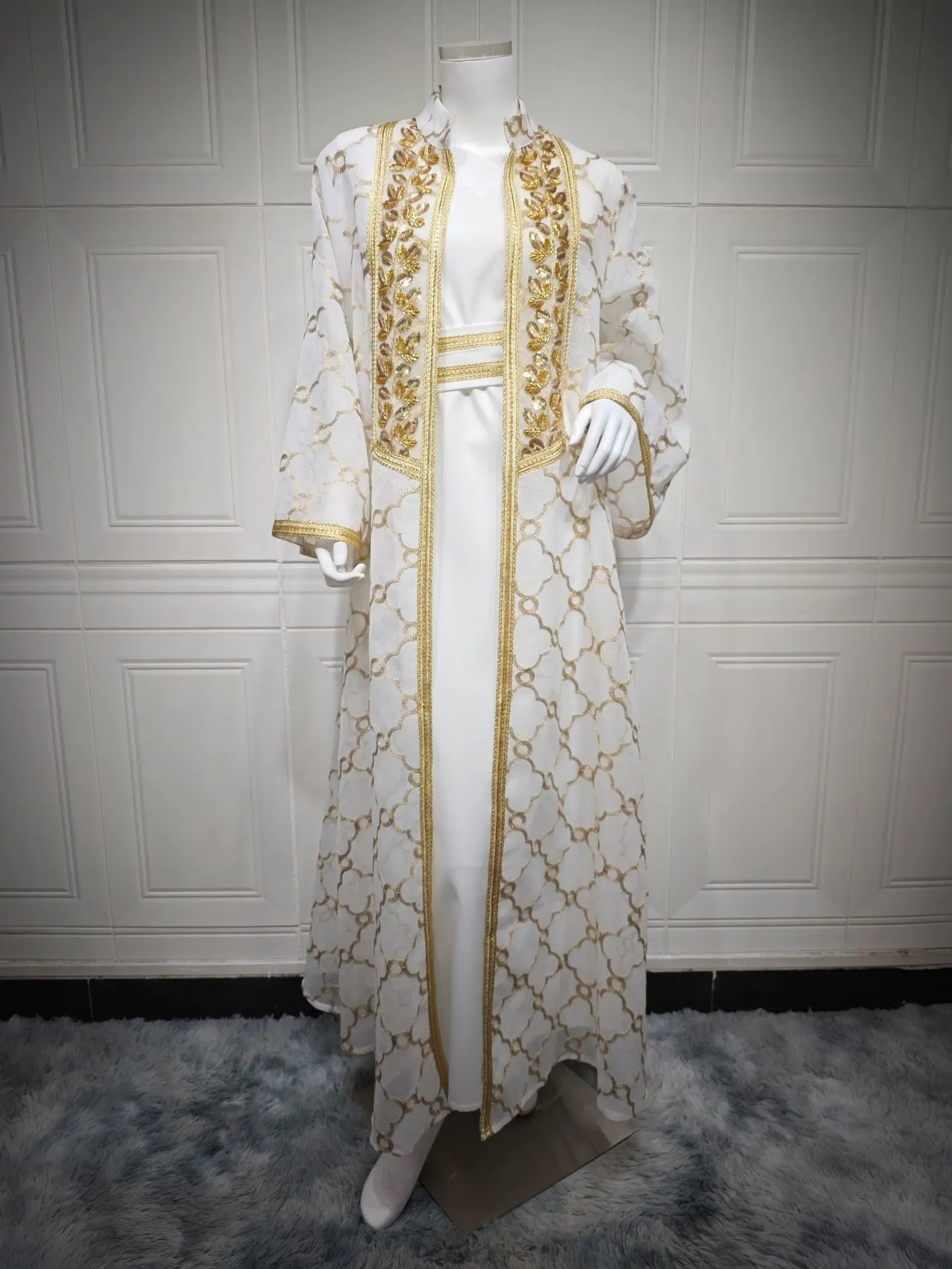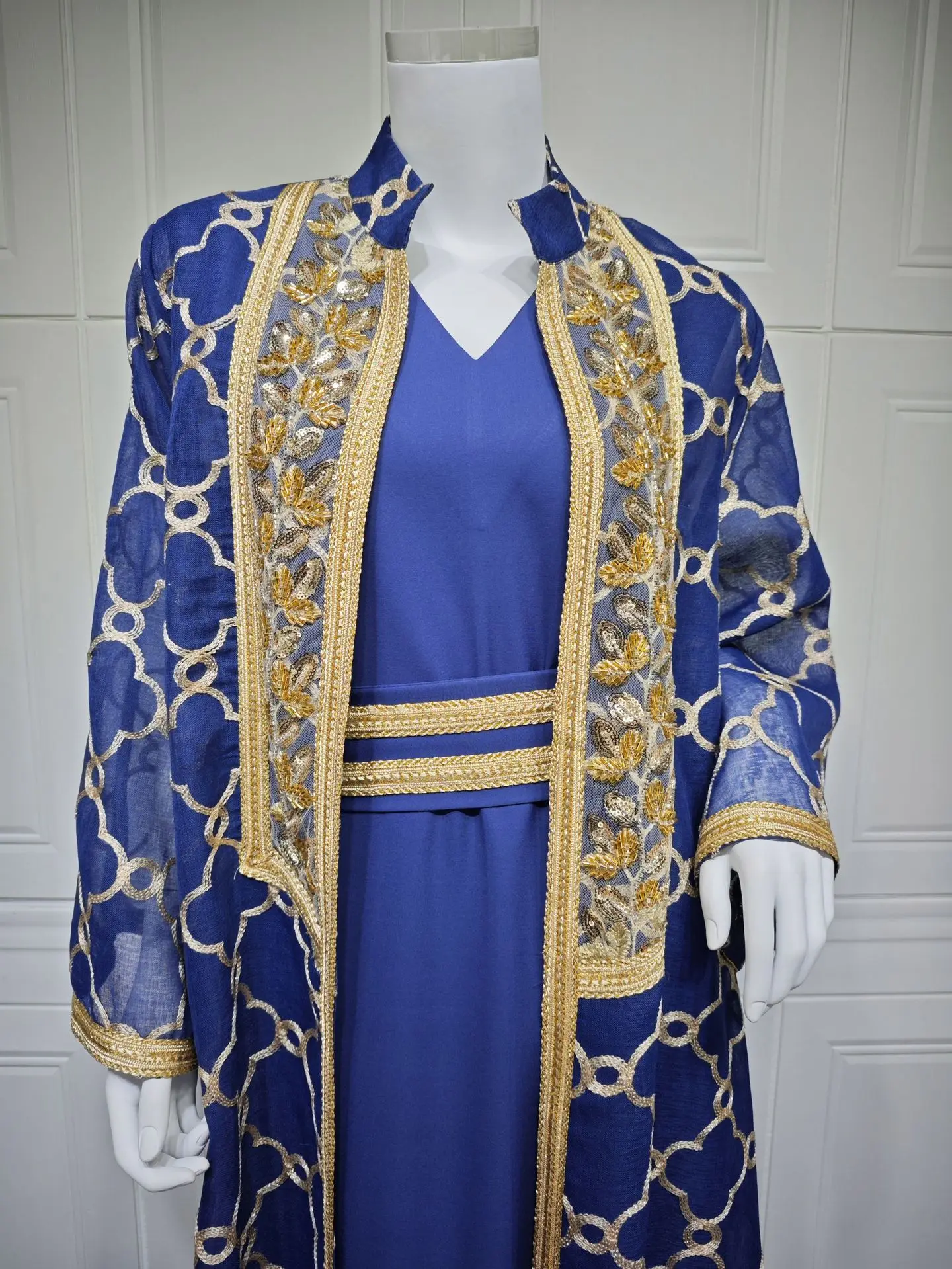 AB416 عيد عباية فستان مجموعة 2 قطعة للنساء مسلم التطريز سترة طويلة رداء رمضان المغرب دبي عبايات قفطان فيستيدوسرقم الموديل:ابي 416
