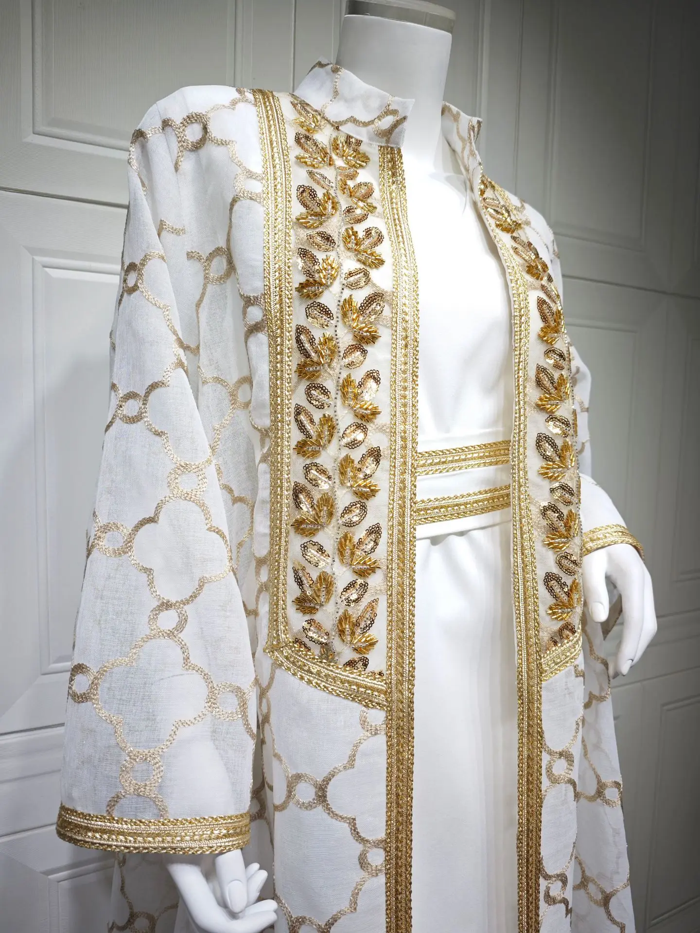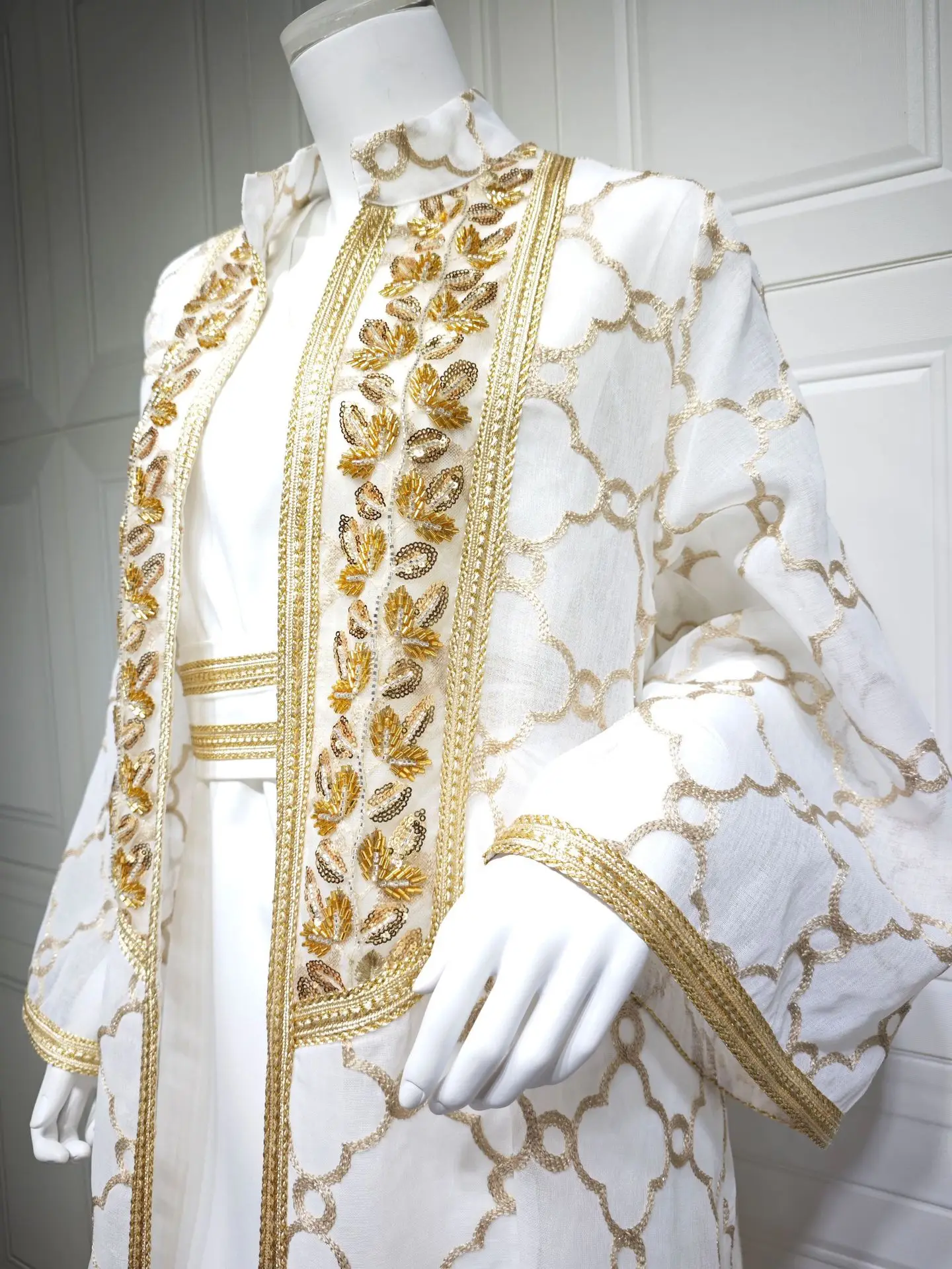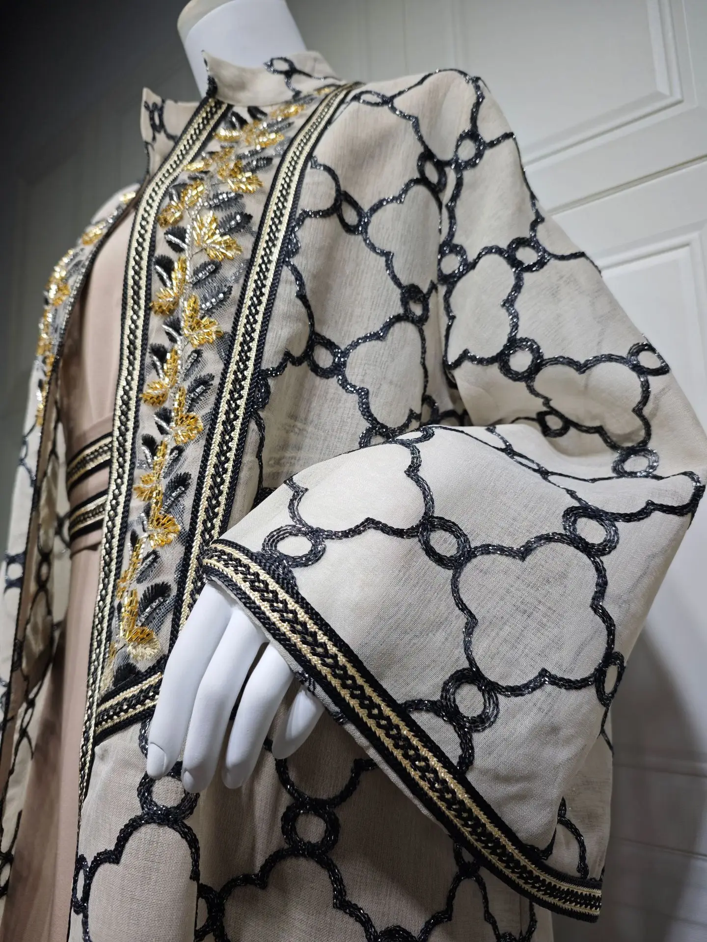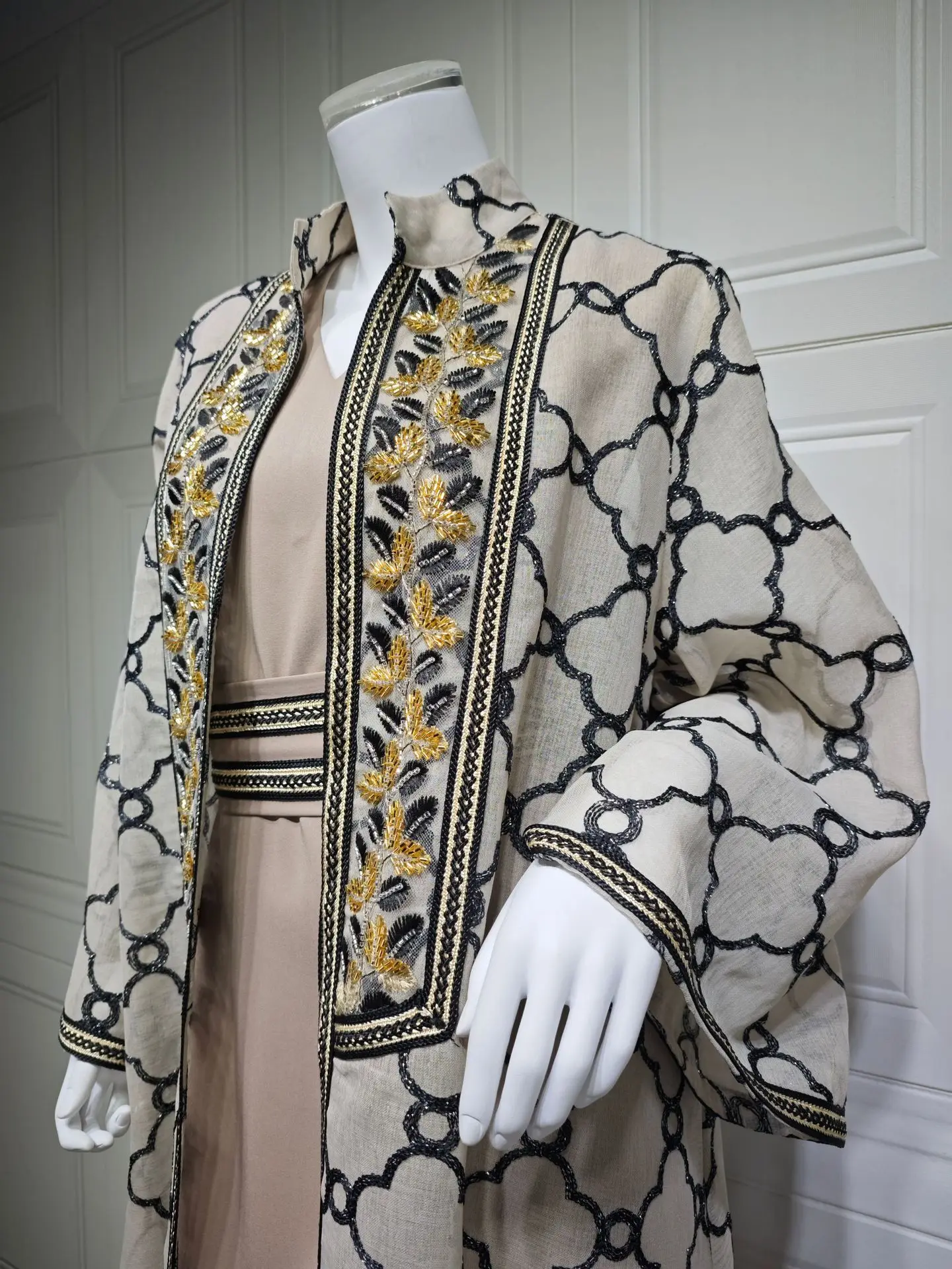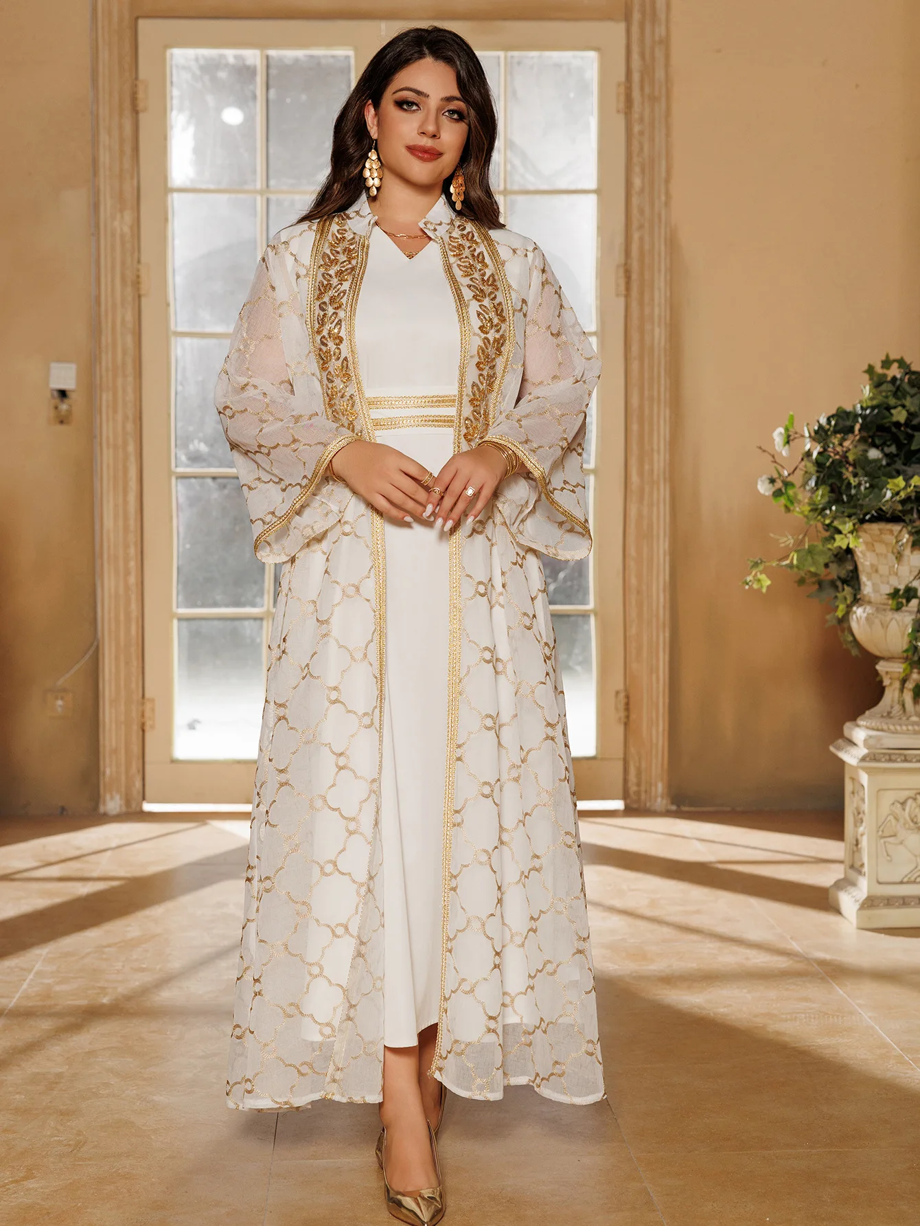 AB416 عيد عباية فستان مجموعة 2 قطعة للنساء مسلم التطريز سترة طويلة رداء رمضان المغرب دبي عبايات قفطان فيستيدوسرقم الموديل:ابي 416
