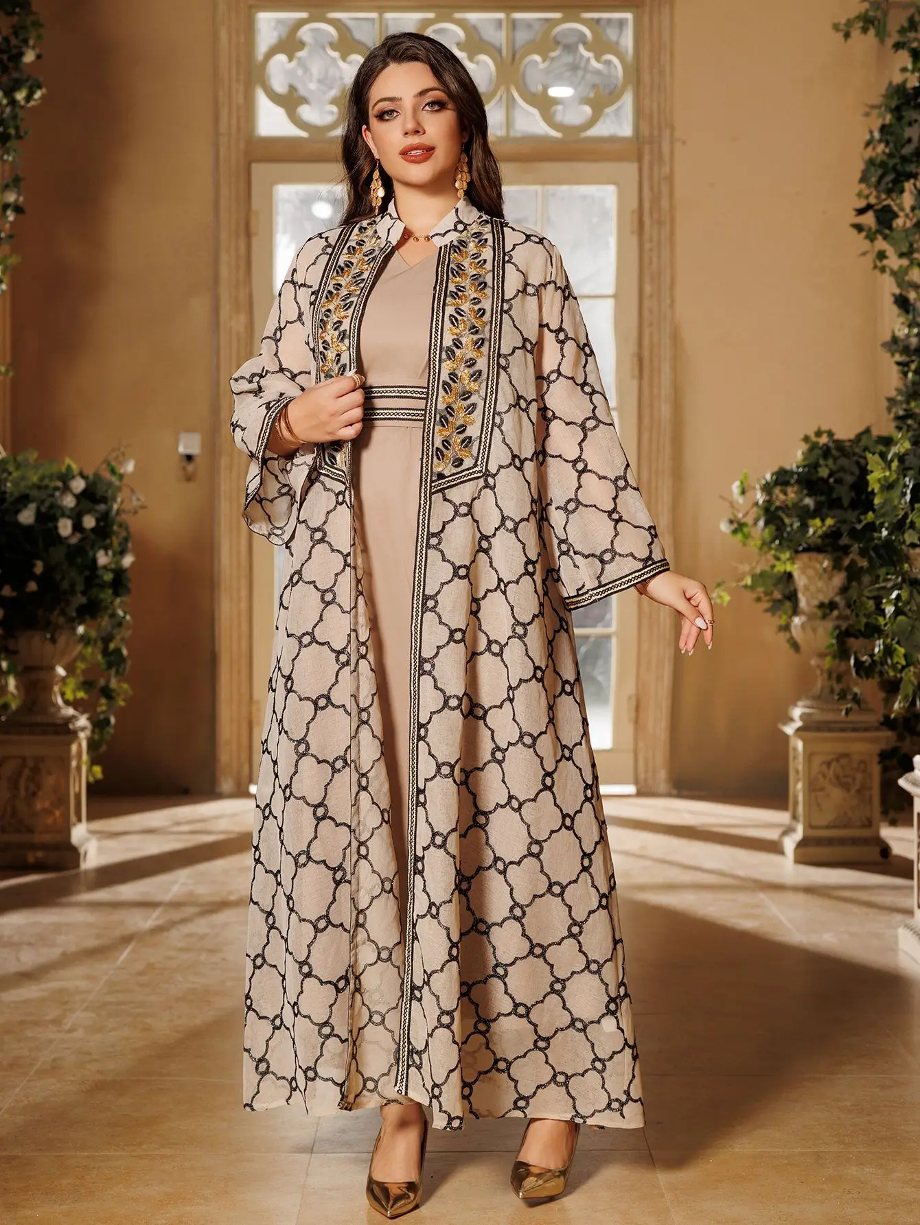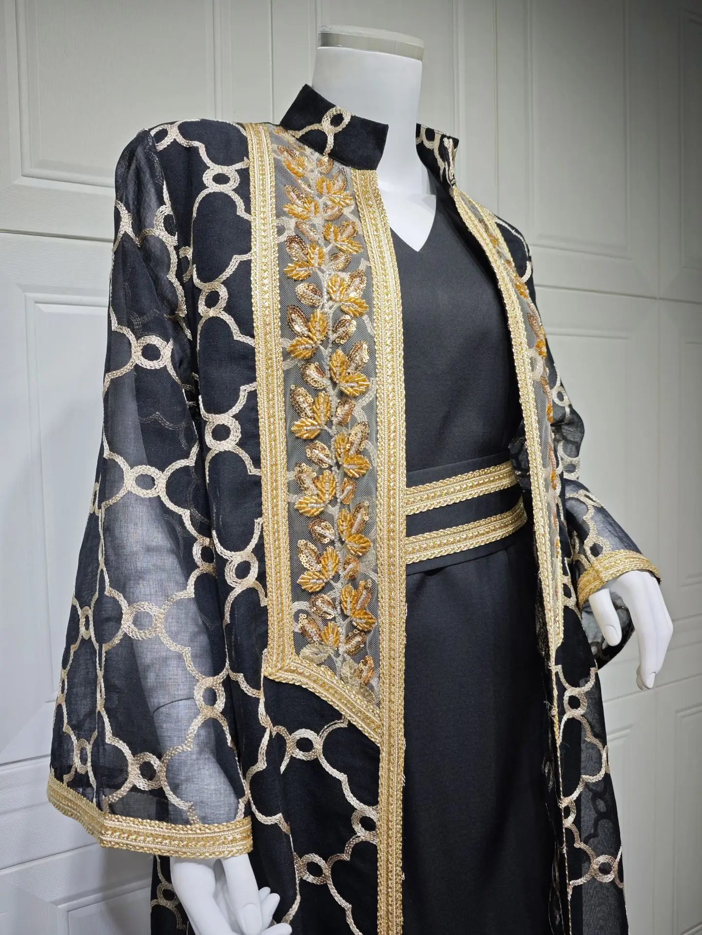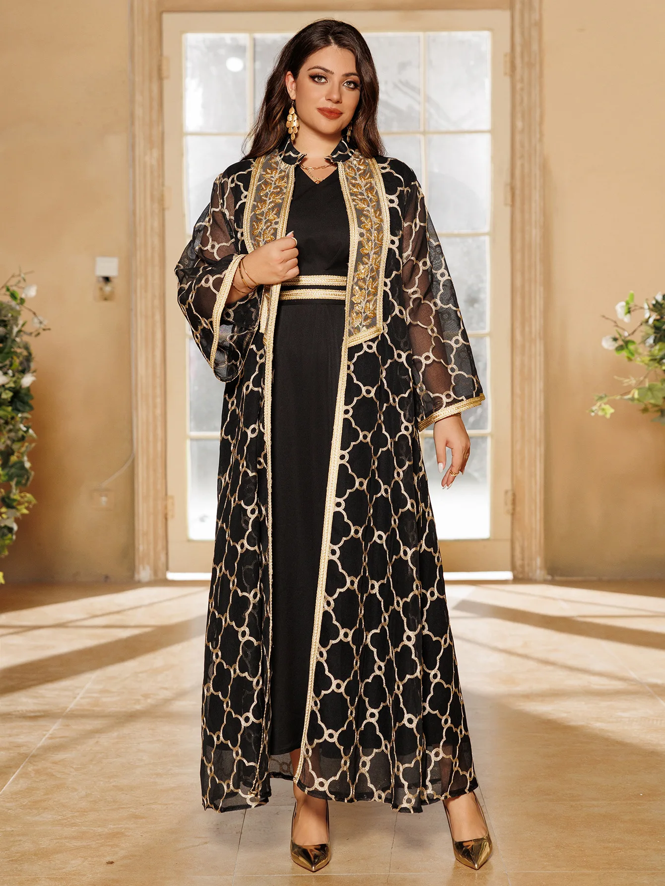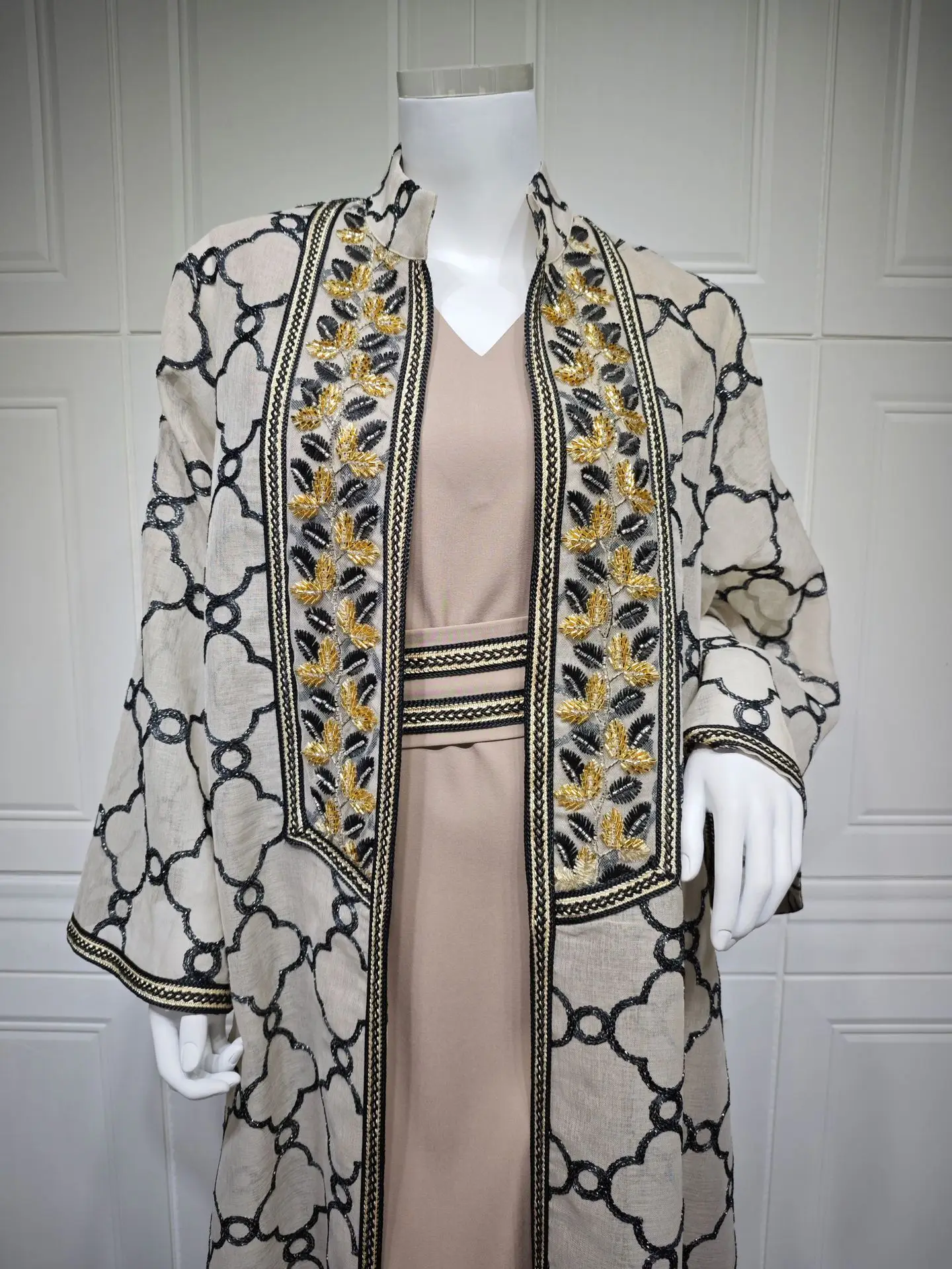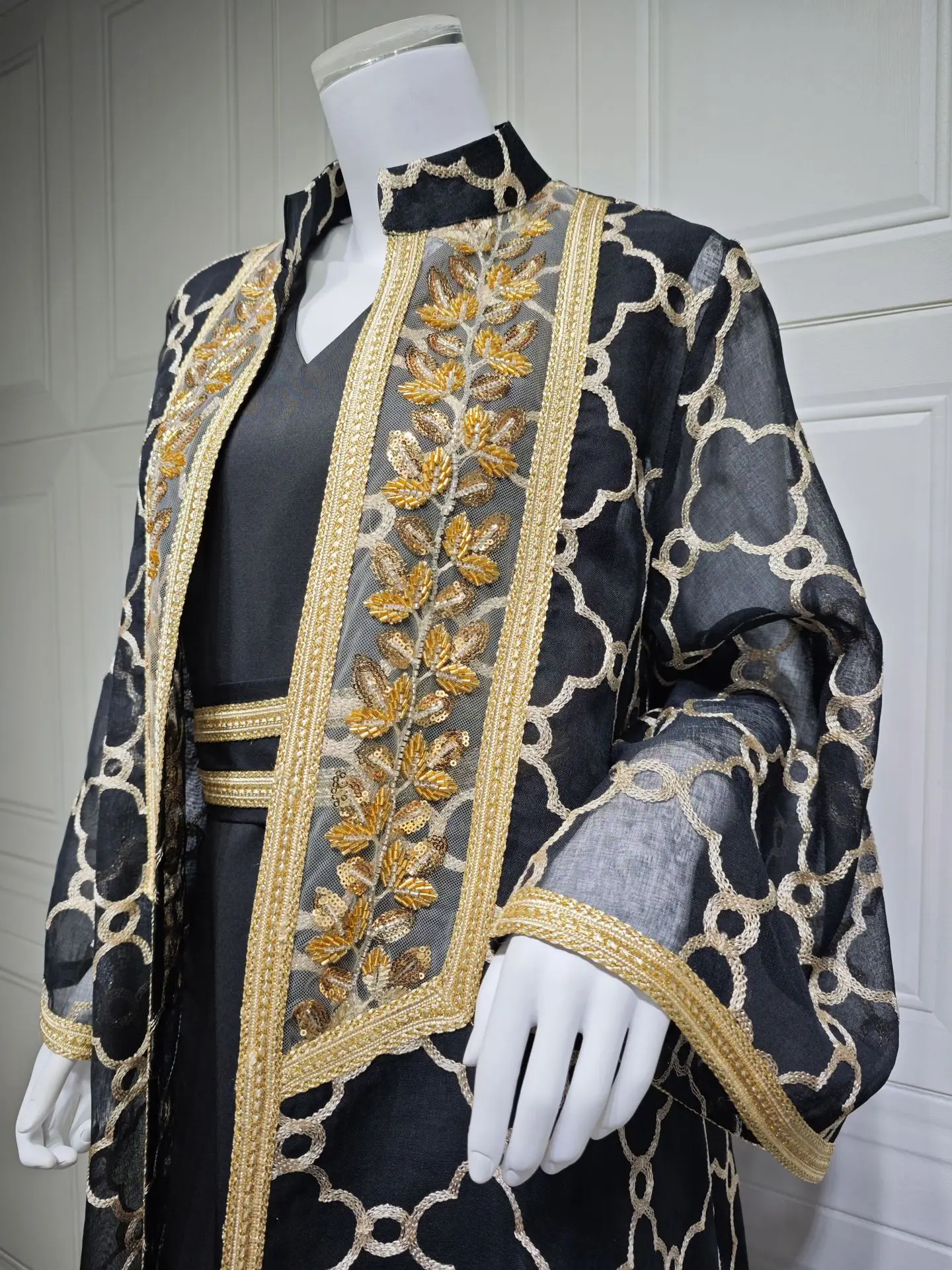 AB416 عيد عباية فستان مجموعة 2 قطعة للنساء مسلم التطريز سترة طويلة رداء رمضان المغرب دبي عبايات قفطان فيستيدوسرقم الموديل:ابي 416