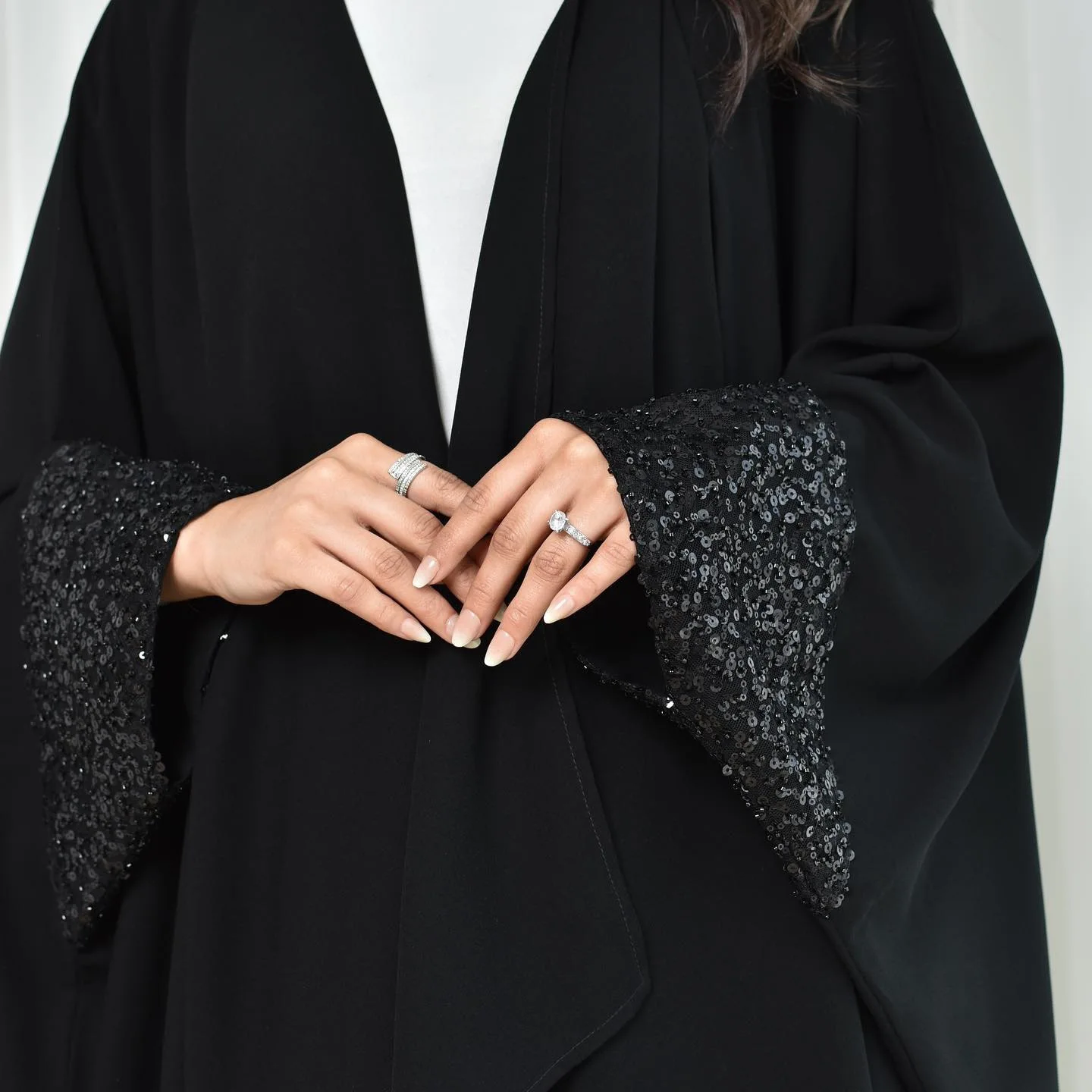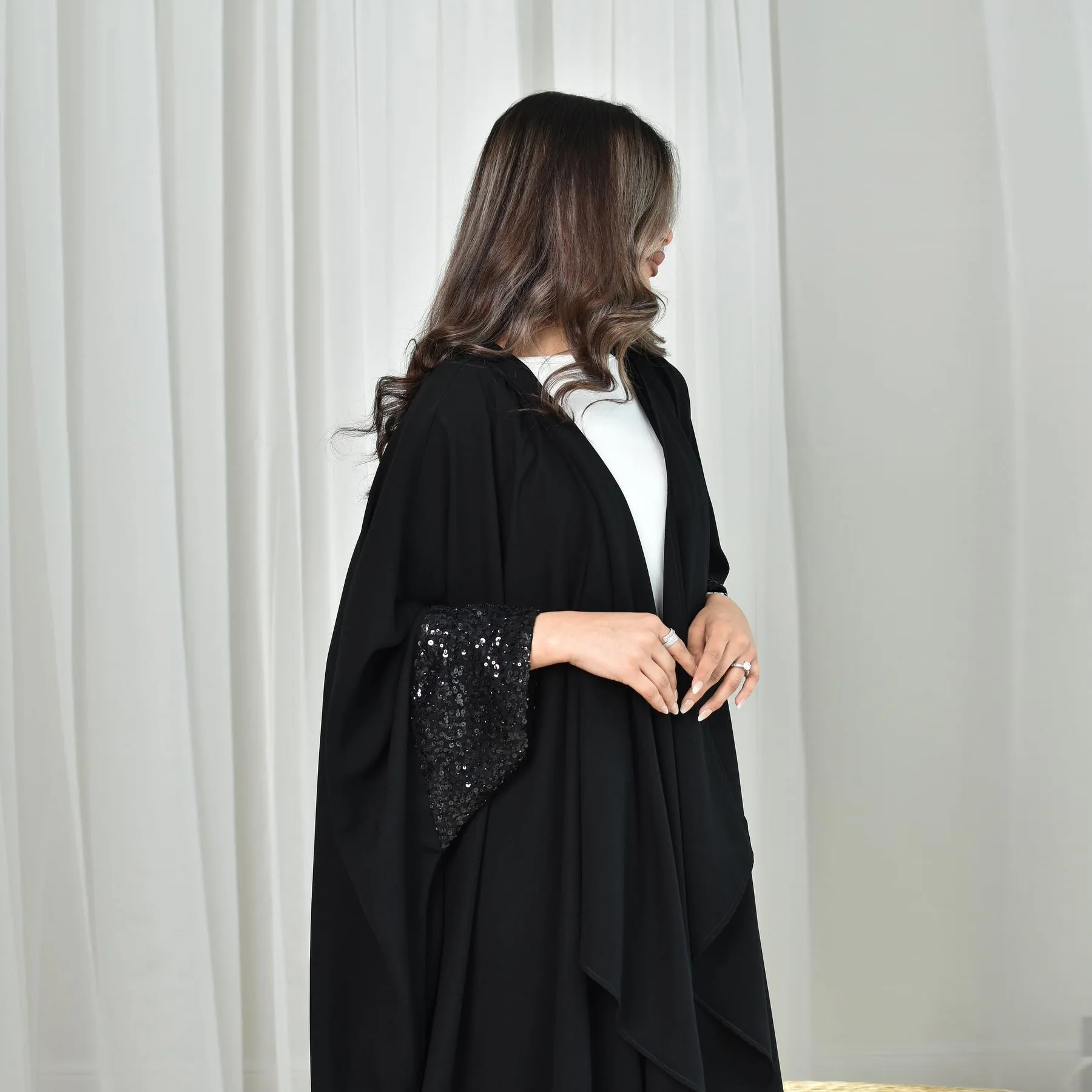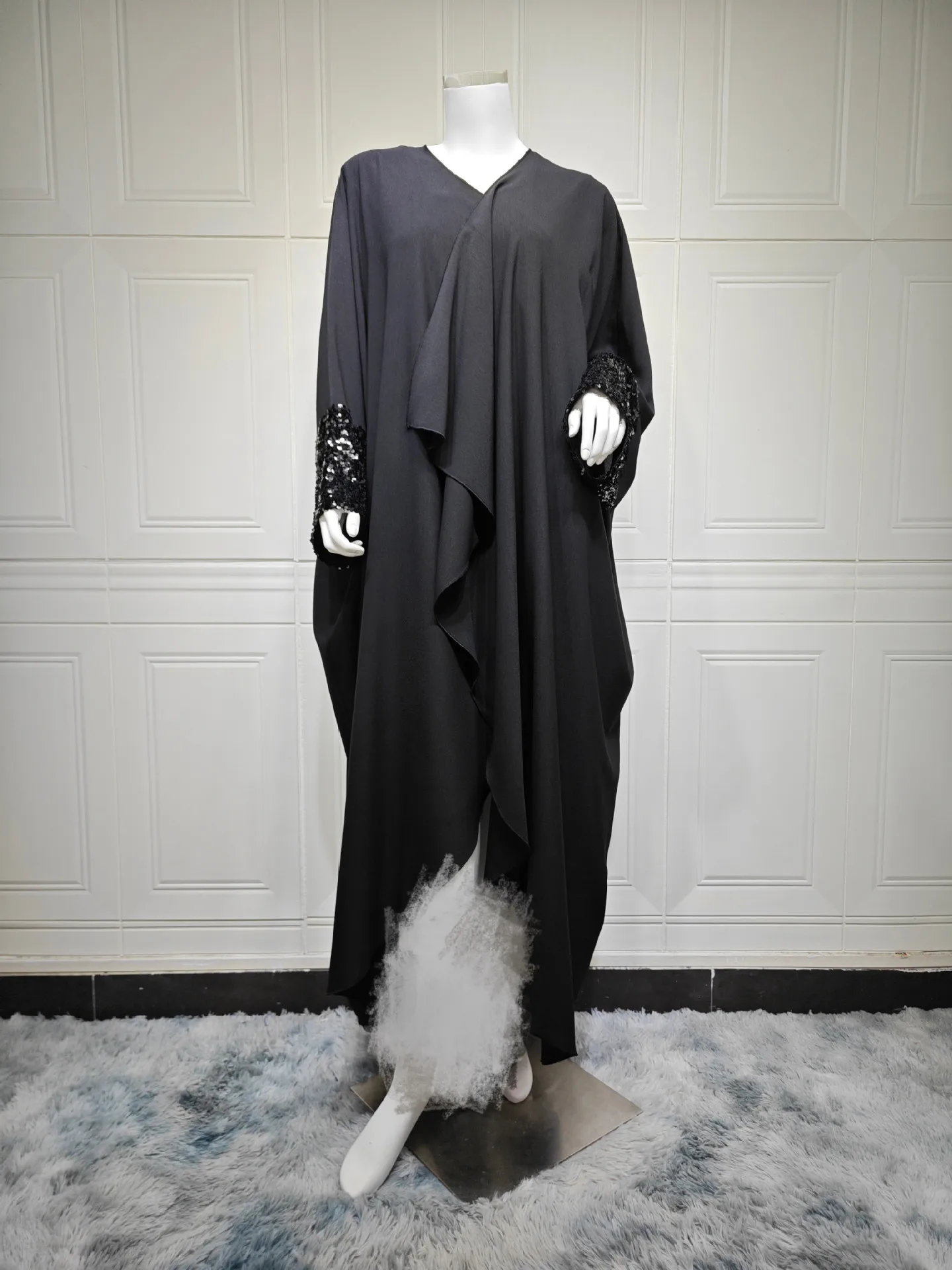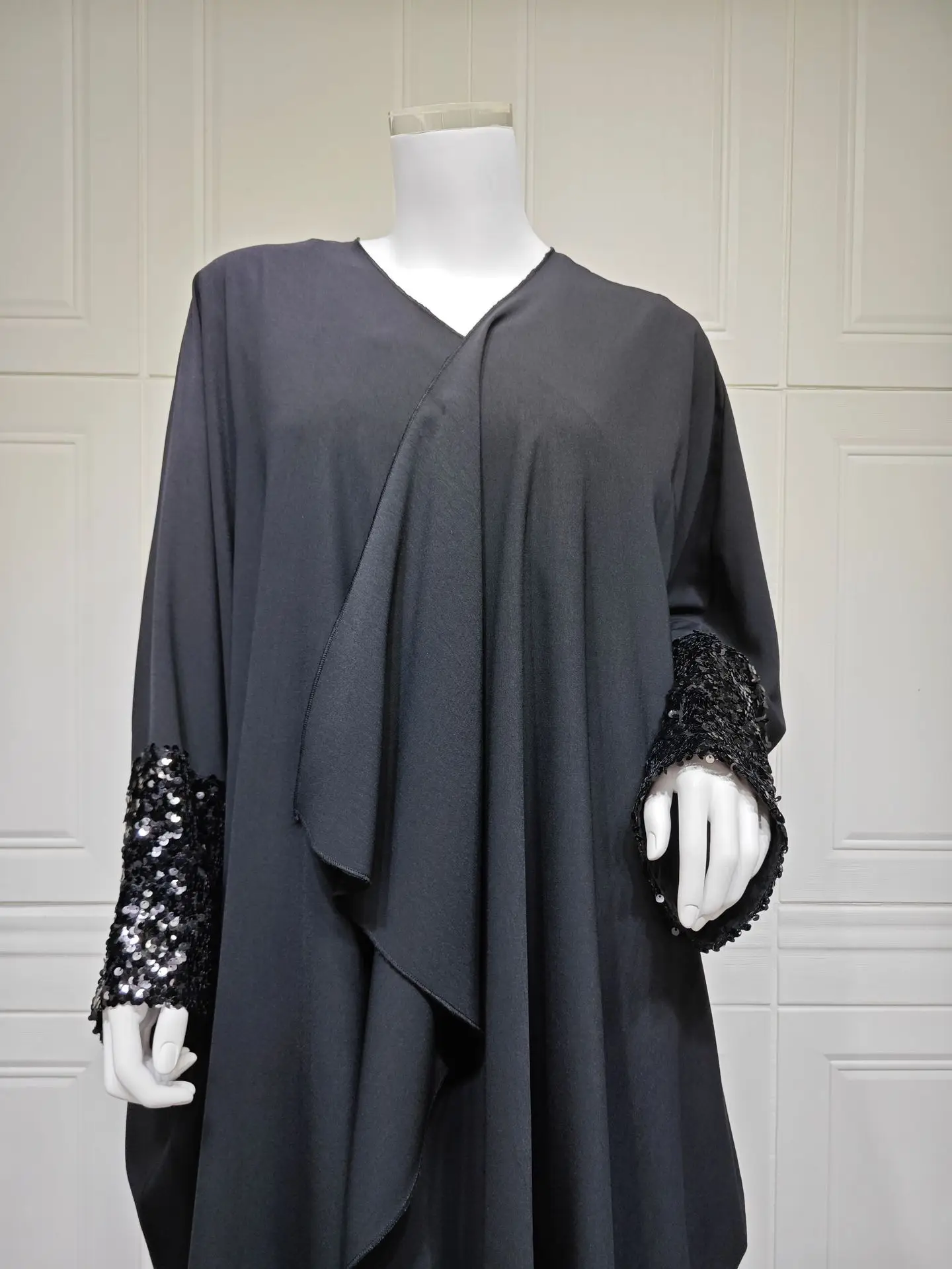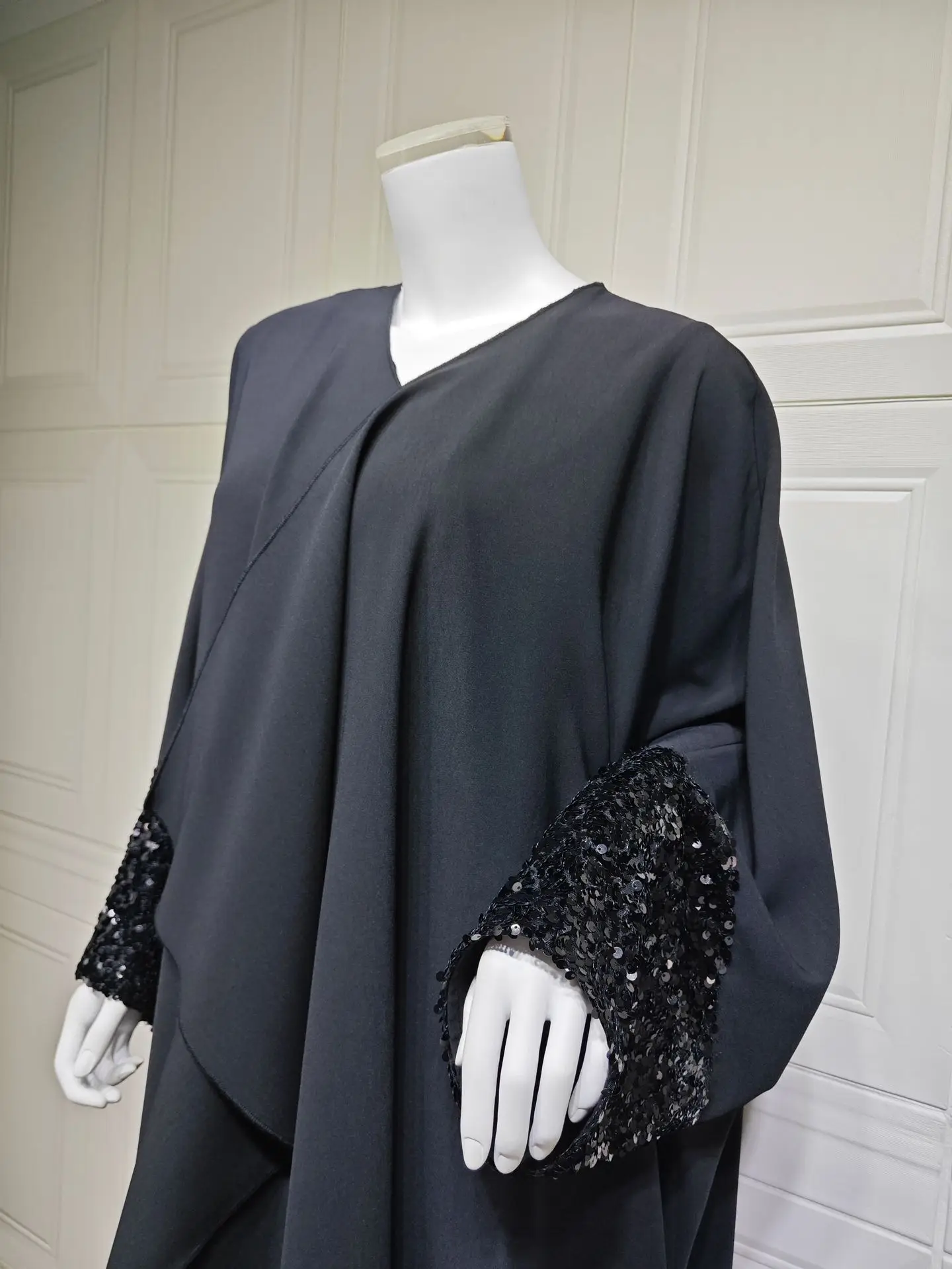 عبايات عيد سوداء للنساء فستان مسلم متواضع دبي عباية مفتوحة كيمونو جلابية كيبيا رداء نسائي قفطان مغربي قفطان رمضان