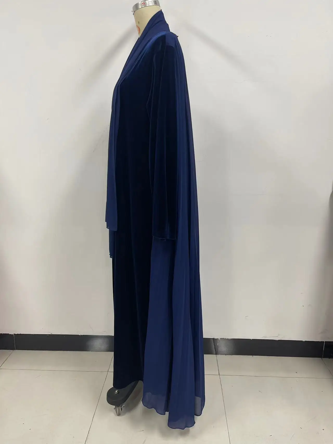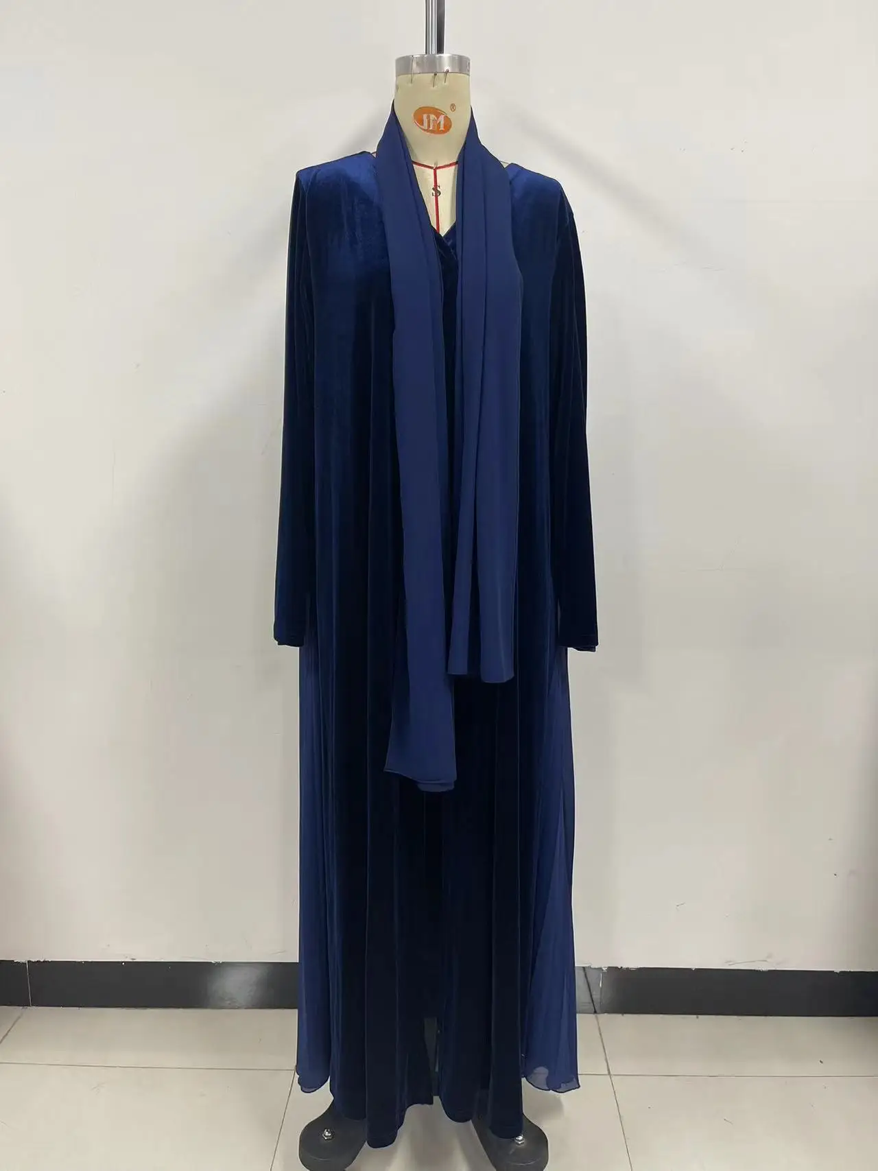 عبايات مخملية جديدة للنساء فستان حجاب مطوي دبي كيمونو سترة إسلامية ملابس كيبيا رداء قفطان ماروكين جلابية