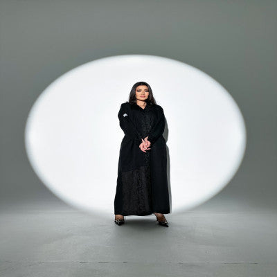 عبايه بليزر بخامة كتان وتدخيلات جاكار مشجر تعتمدها المرأه الانيقه والعمليه في الخريف