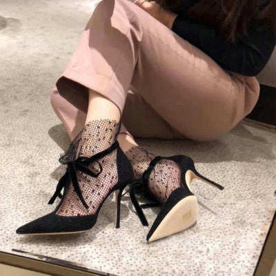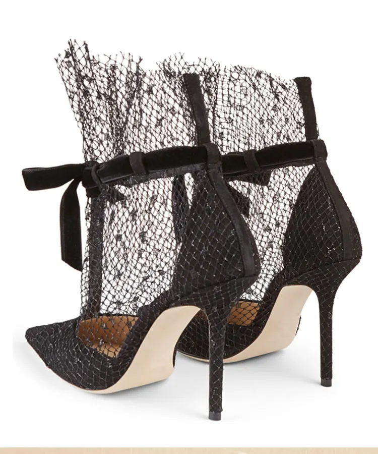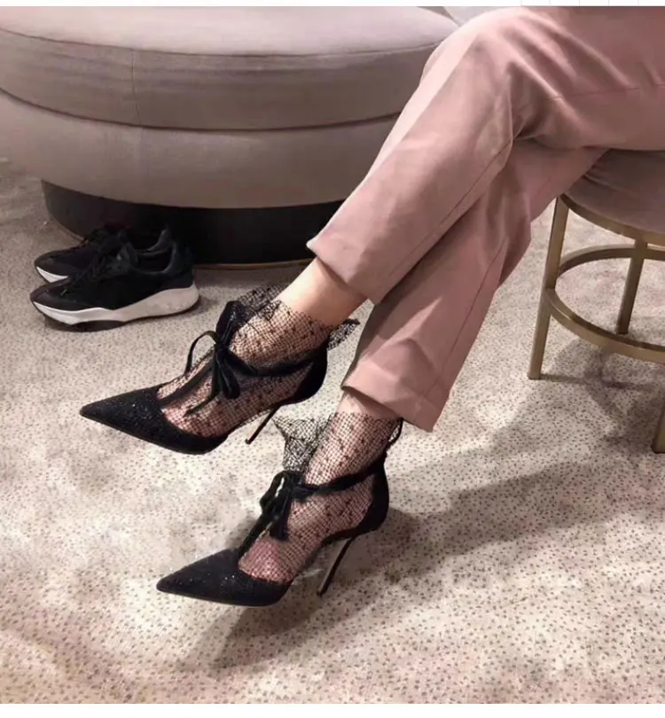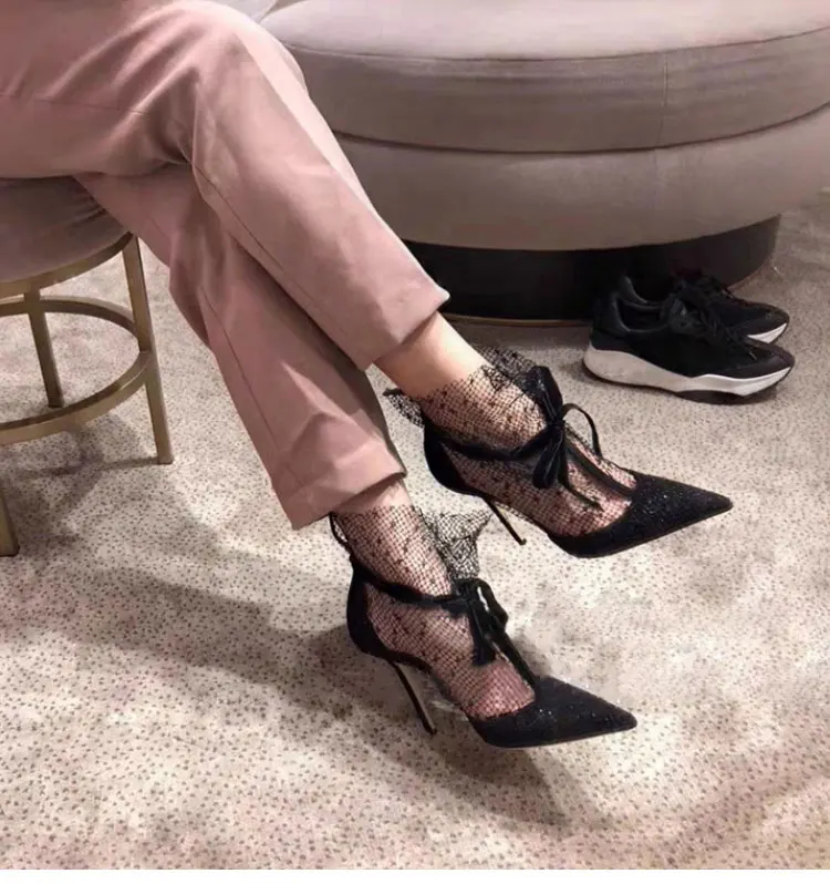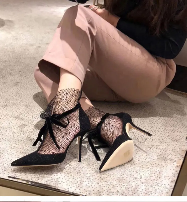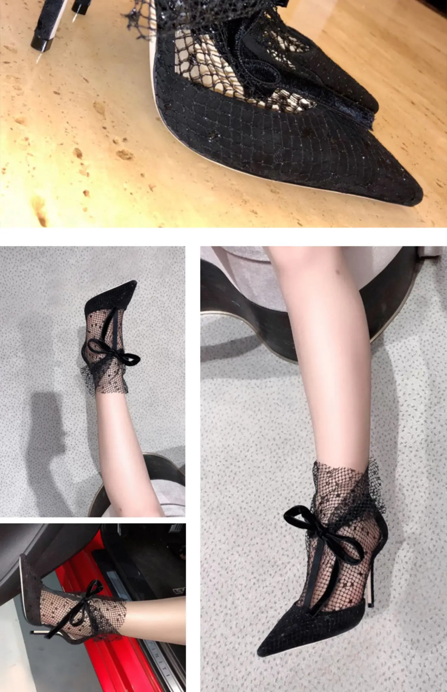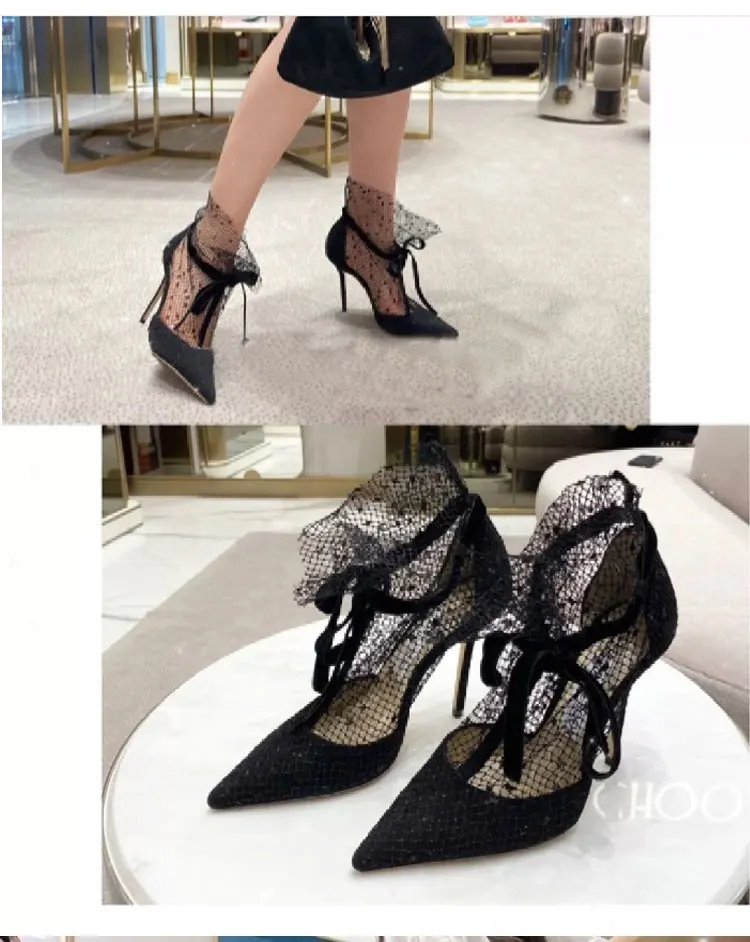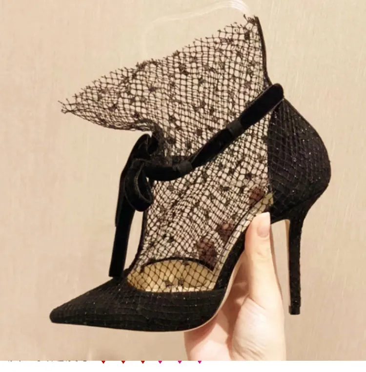 كعب عالي للنساء من الدانتيل قابل للتنفس ، صنادل حمراء شبكية ، كعب مدبب ، أحذية رائعة رومانية ، جديدة ، صيفية
