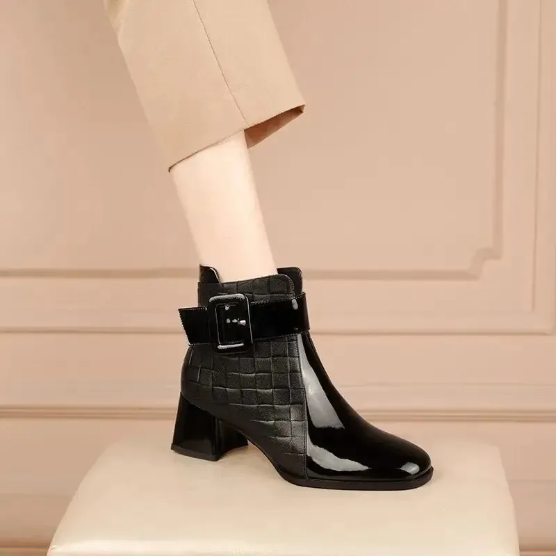 2024 أحذية السيدات الجانب سستة الأحذية النسائية موضة اللون مطابقة الأحذية الحديثة النساء جديد حزام مشبك حذاء من الجلد