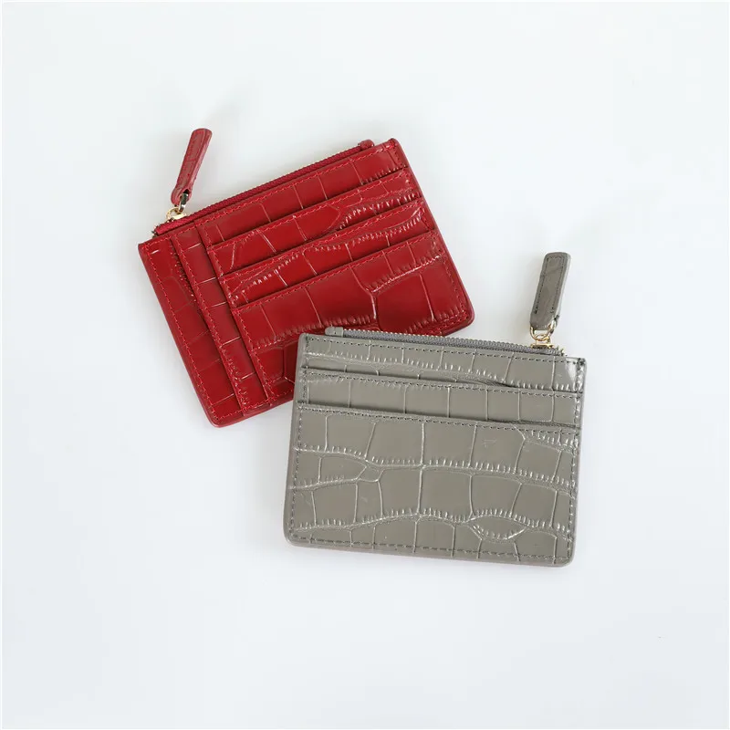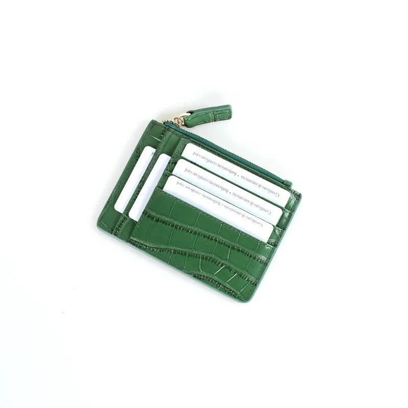 حامل بطاقات جلد طبيعي للرجال والنساء حقيبة جلد البقر مع محفظة بنمط تمساح مجانية اسم مخصص معرف بطاقة الهوية الائتمانية محفظة